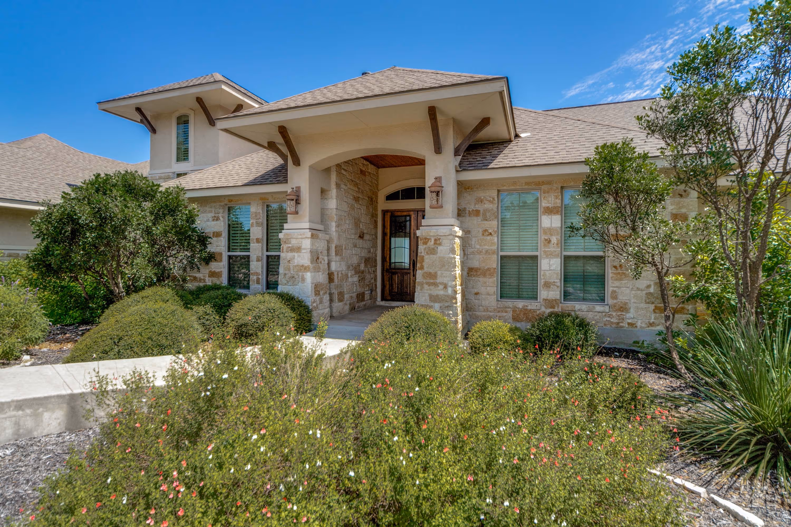 Welcome to 567 Horizon Crest, a stunning residence nestled within the prestigious gated community of Coveney Ranch in Boerne, TX. This exceptional 3-bedroom, 3.5-bathroom home spans 3,550 square feet and sits majestically on a sprawling 3-acre lot. There are too many special upgrades in this home to give them all justice here, so please make sure you see the list of features in the Associated Docs. Upon arrival, you are greeted by meticulously landscaped grounds and a grand entrance that sets the tone for the luxurious living spaces within. The interior boasts a custom floor plan designed for comfort, elegance, and practicality, featuring high ceilings, custom millwork, and large windows that flood the home with natural light while offering panoramic views of the surrounding Texas Hill Country. The gourmet kitchen is a chef's delight, equipped with top-of-the-line appliances, double ovens, dual sinks, ample counter space, and two islands perfect for entertaining guests. Adjacent to the kitchen is a spacious breakfast nook and a relaxing sitting area each overlooking the expansive Hill Country terrain, making them ideal for family gatherings, enjoying morning coffee, reading a book, or even watching some TV.. The master suite is a private retreat complete with a spa-like ensuite bathroom featuring separate his and hers vanities, a soaking tub, a separate walk-in shower, and a walk-in closet large enough for two entire wardrobes. Two additional well-appointed bedrooms, each with their own ensuite bathrooms, provide comfort and privacy for family members or guests. Just off the entrance is a dining room large enough to accommodate up to a 10 seat set perfectly situated for your Holiday family gatherings and a cozy but roomy living room complete with a stone wood-burning fireplace, custom built-in entertainment center, and surround sound system ready for you and your family to make new memories in. Outside, the property is a serene oasis with plenty of room for outdoor activities and relaxation. Whether having coffee during a Texas Hill Country sunrise from the huge covered patio, sitting around the fire-pit swapping stories, or tinkering on your new project in the 800+ sq ft detached barn / workshop every corner of this property embodies secluded tranquility and privacy. Located in the sought-after Coveney Ranch subdivision, residents enjoy gated access, a community park with a fishing pond, and Hill Country views terrain and wildlife at every turn, all within a short drive from the vibrant city of Boerne and its charming shops, cultural attractions, practicality, restaurants, and schools. 567 Horizon Crest represents a rare opportunity to own a luxurious retreat in one of Boerne's most coveted neighborhoods. With its impeccable Bruce Baker craftsmanship, expansive grounds, and prime location, this home offers the perfect blend of sophistication and Texas Hill Country charm. Discover the lifestyle you've been dreaming of - schedule your private tour today and experience the essence of refined living at 567 Horizon Crest.